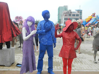 The entrance into the festival. Notice that it even says "mud" in English - now that's what I call being foreign friendly! I have to give props to the people who used the mud as part of their costumes, since they were dressed like this for the whole day!